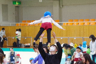 親子で体操も楽しかった。 高い高い高すぎるー!気持ち良さそう!