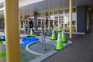 プール開き前に屋外シャワーの排水工事が完了しました。 これで周囲が水浸しにならずに済む筈です。 トマトとキュウリ