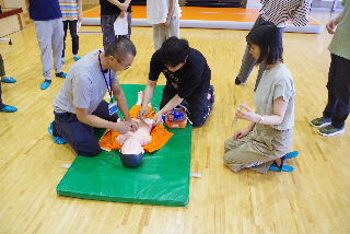 心肺停止状態や異物で窒息している状態での救急救命について学びました。